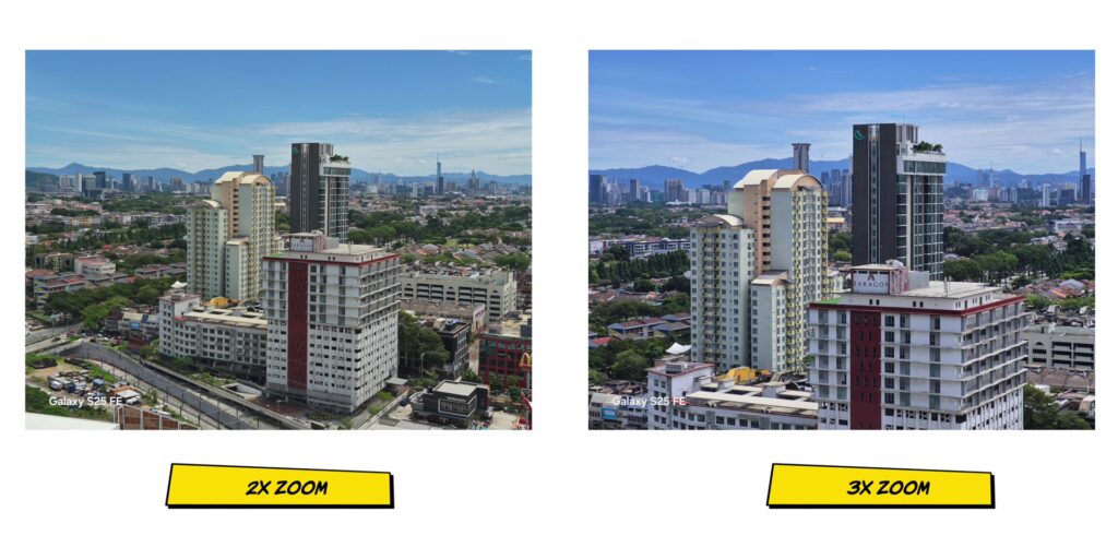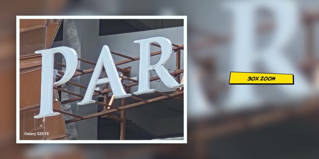 But another area where the software optimization plays a huge part was the phone’s cameras. Hardware wise, this has a 50 MP main, a 12 MP ultrawide, and an 8 MP telephoto lens, which is the same camera module as last year’s S24 FE. But there’s an improvement in almost every area except just two areas which still makes this phone look like an FE model for this particular area.